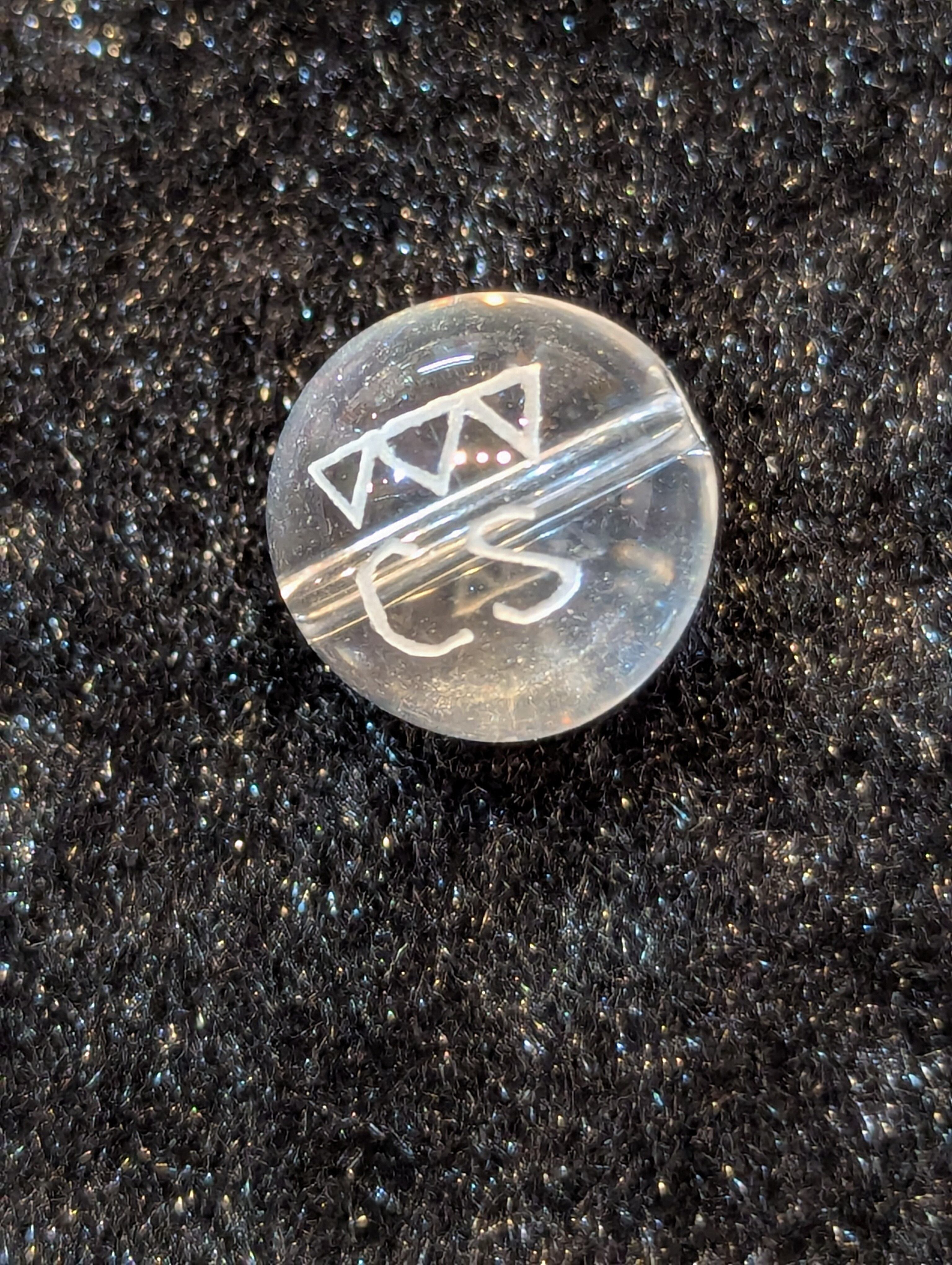 水晶の12ミリ玉ビーズに龍体文字を刻んだシリーズです。