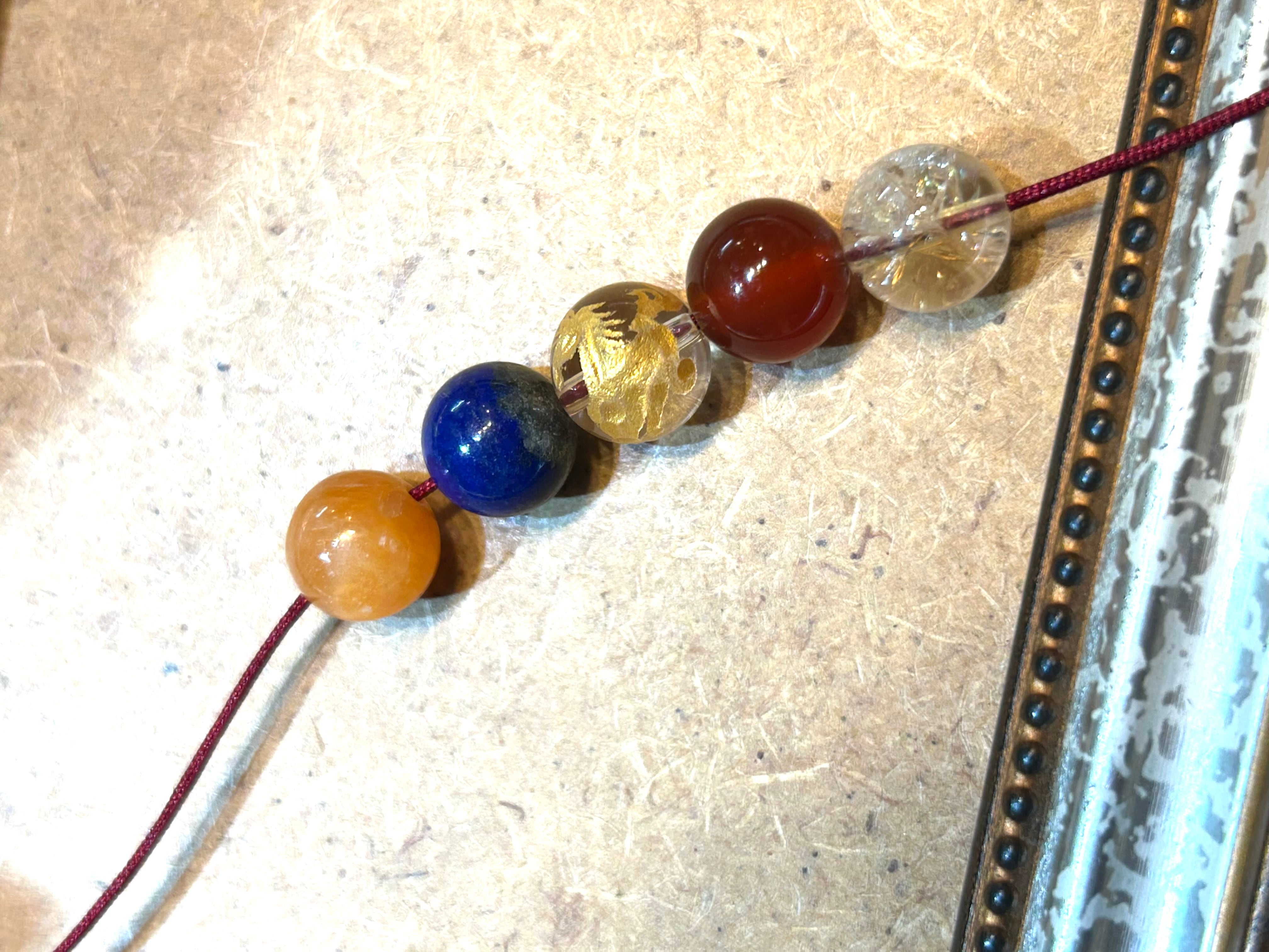使用クリスタルはオレンジカルサイト、ラピスラズリ、カーネリアン、シトリン