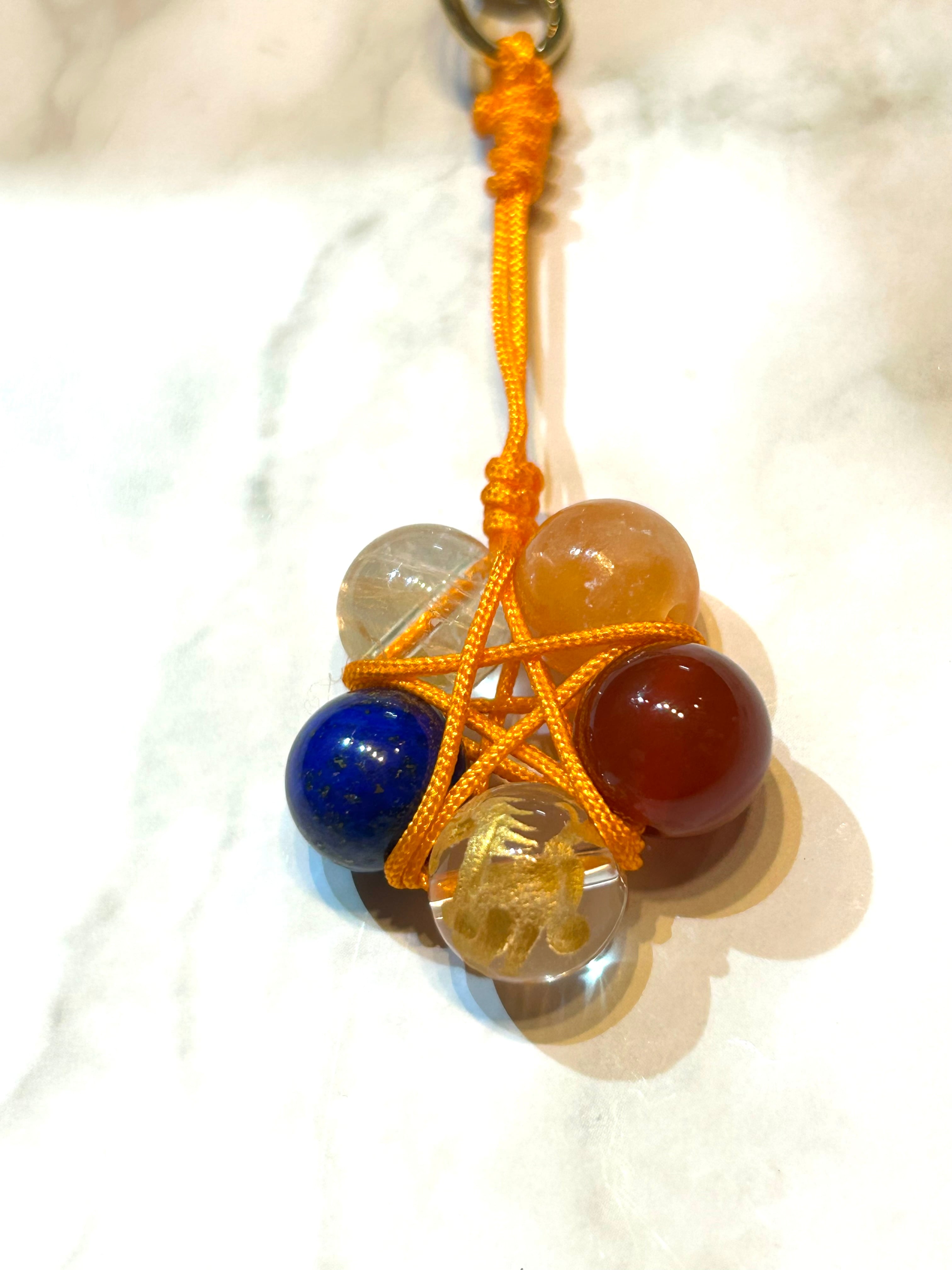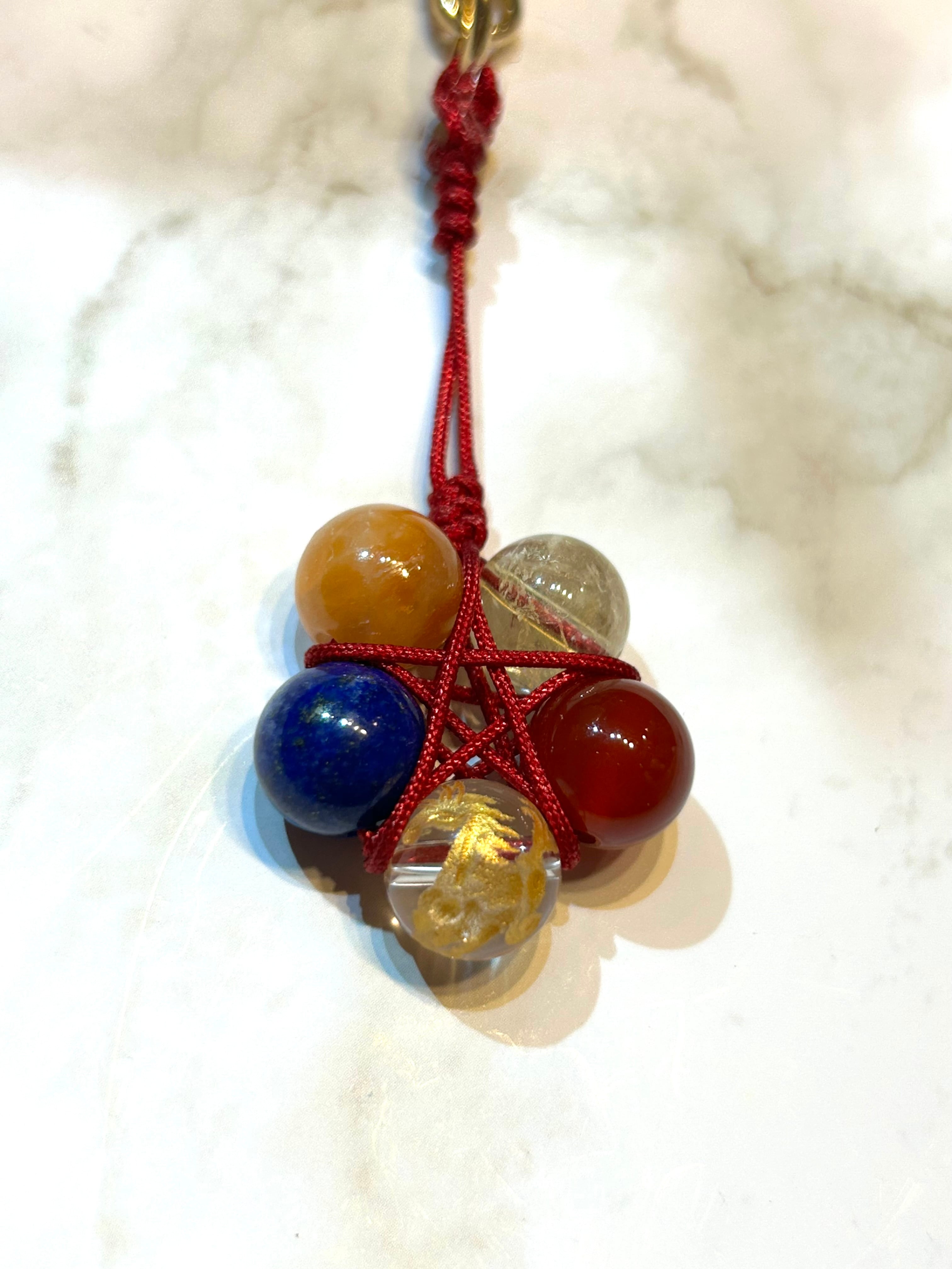 2026年干支 午彫刻水晶、2026年サポートクリスタルを、用いての五芒星チャーム。