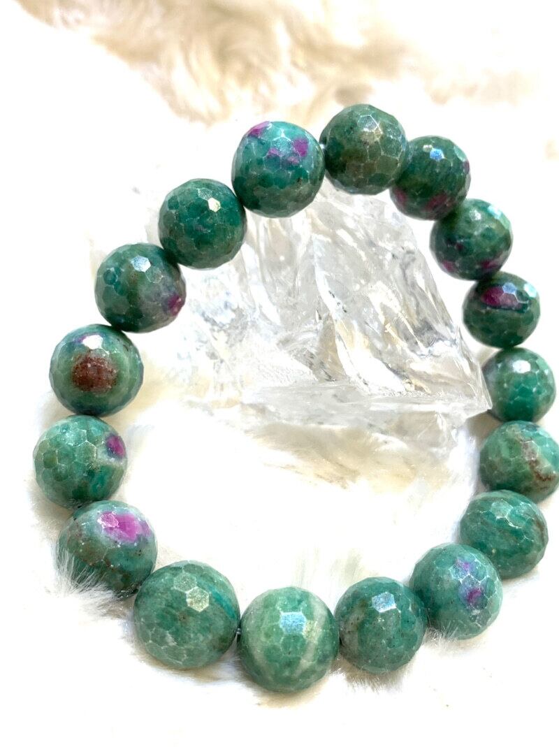 ルビー入りのゾイサイトは体に活力を与え幸福感を生み出します。