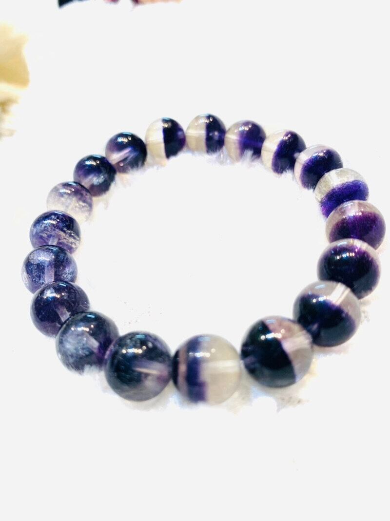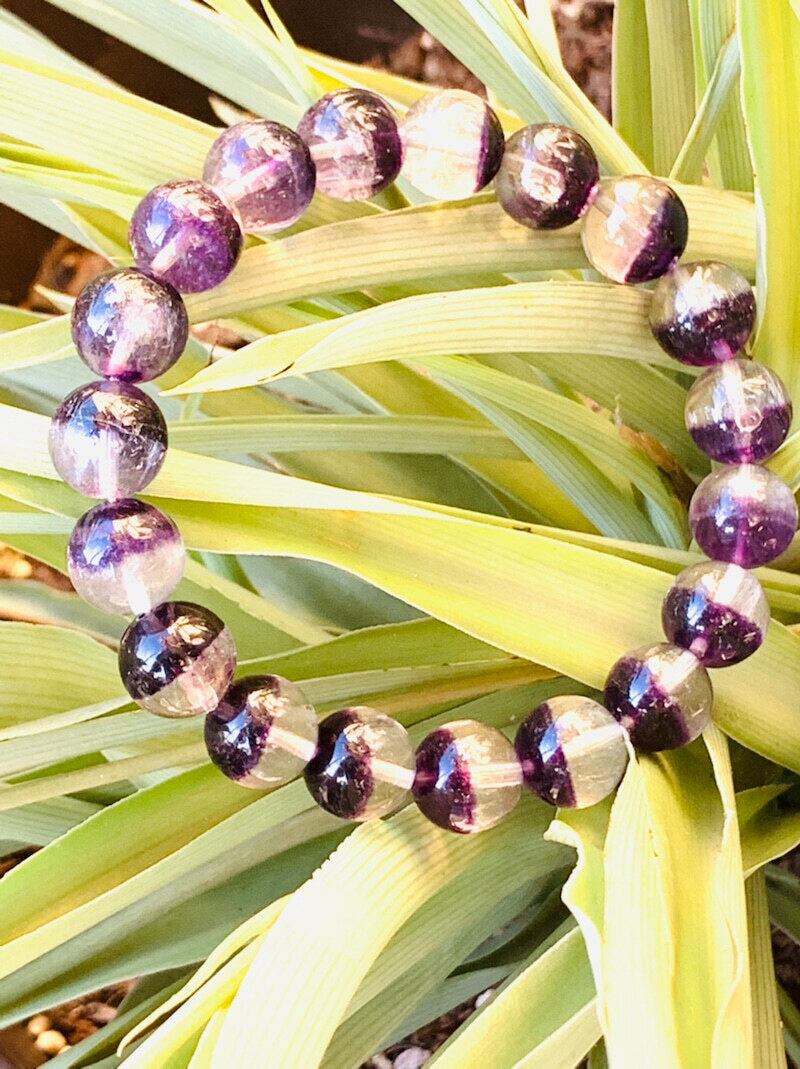 今回のバイカラーフローライトブレスは一粒のビーズの中に見えるツートンカラーがとっても魅力的。
