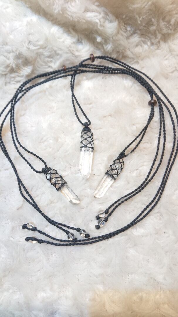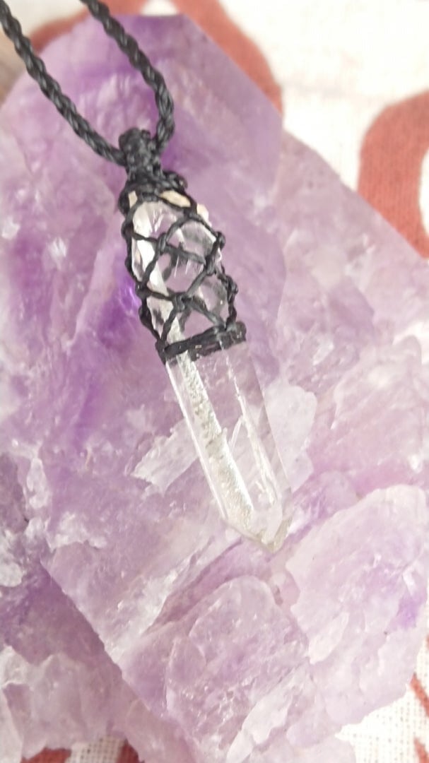 ゼッカ ジ ソウザ産水晶ナチュラルポイント☆マクラメネックレス(小A)