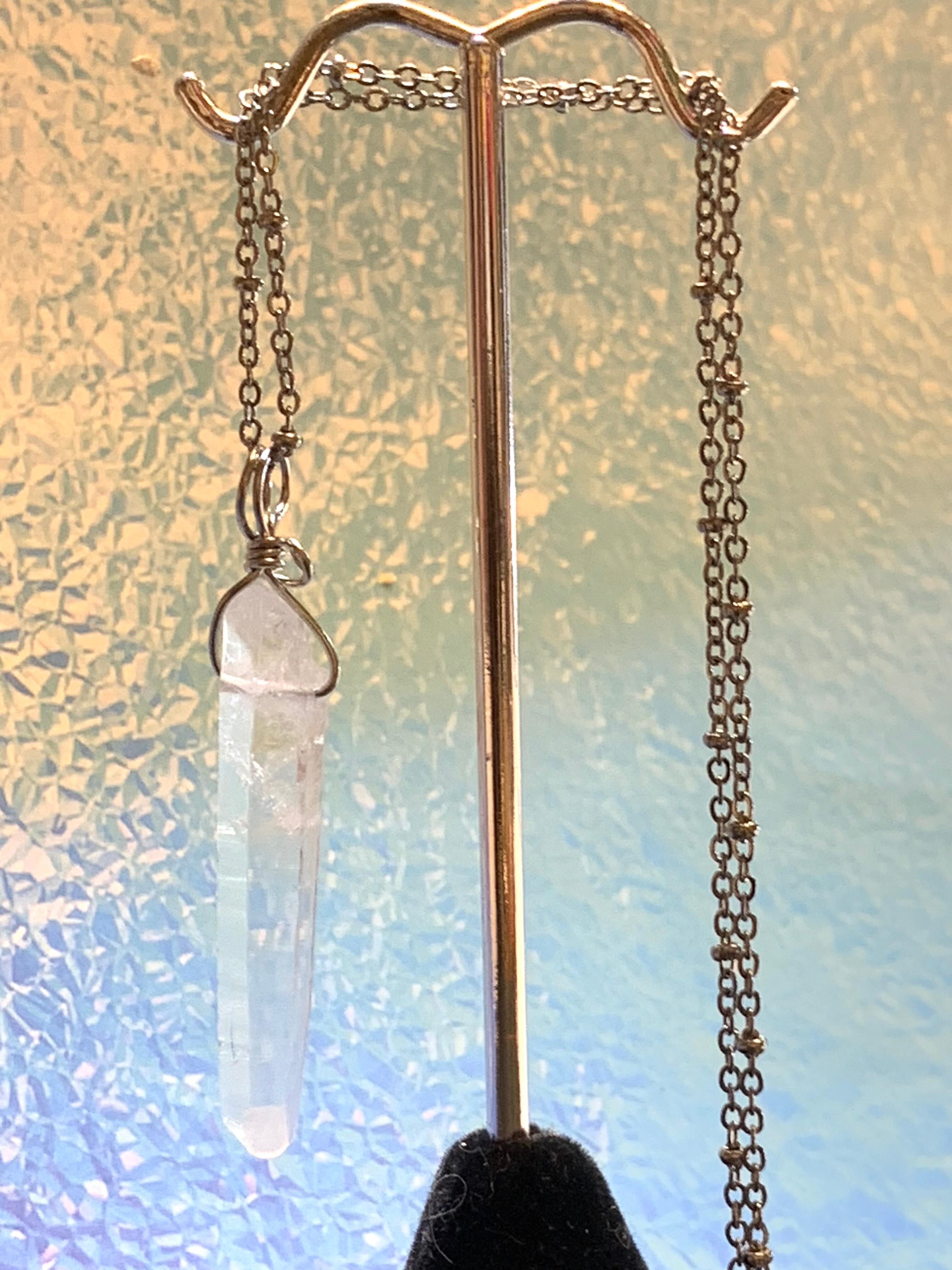 レーザークリスタル+45センチステンレスチェーン付きネックレス。