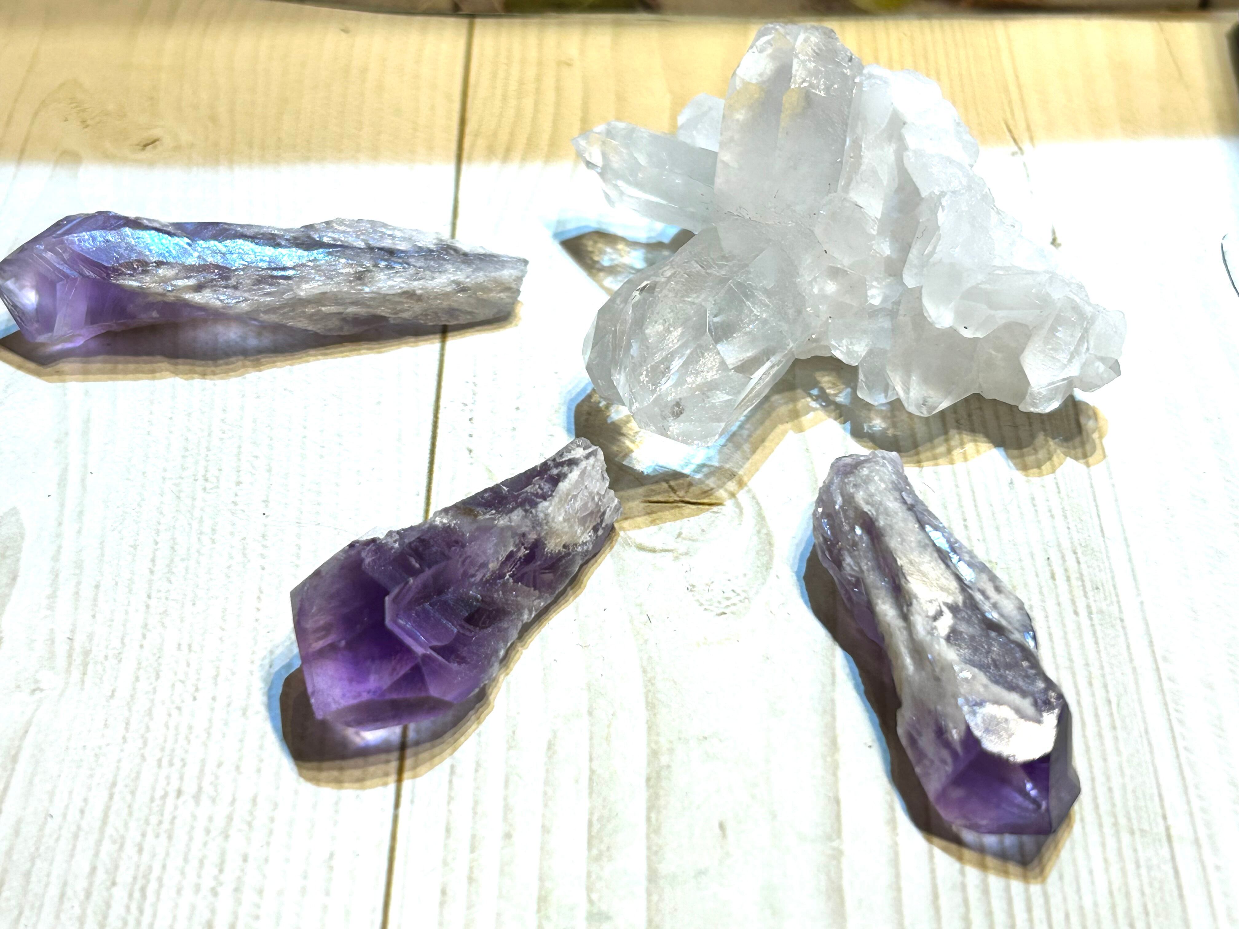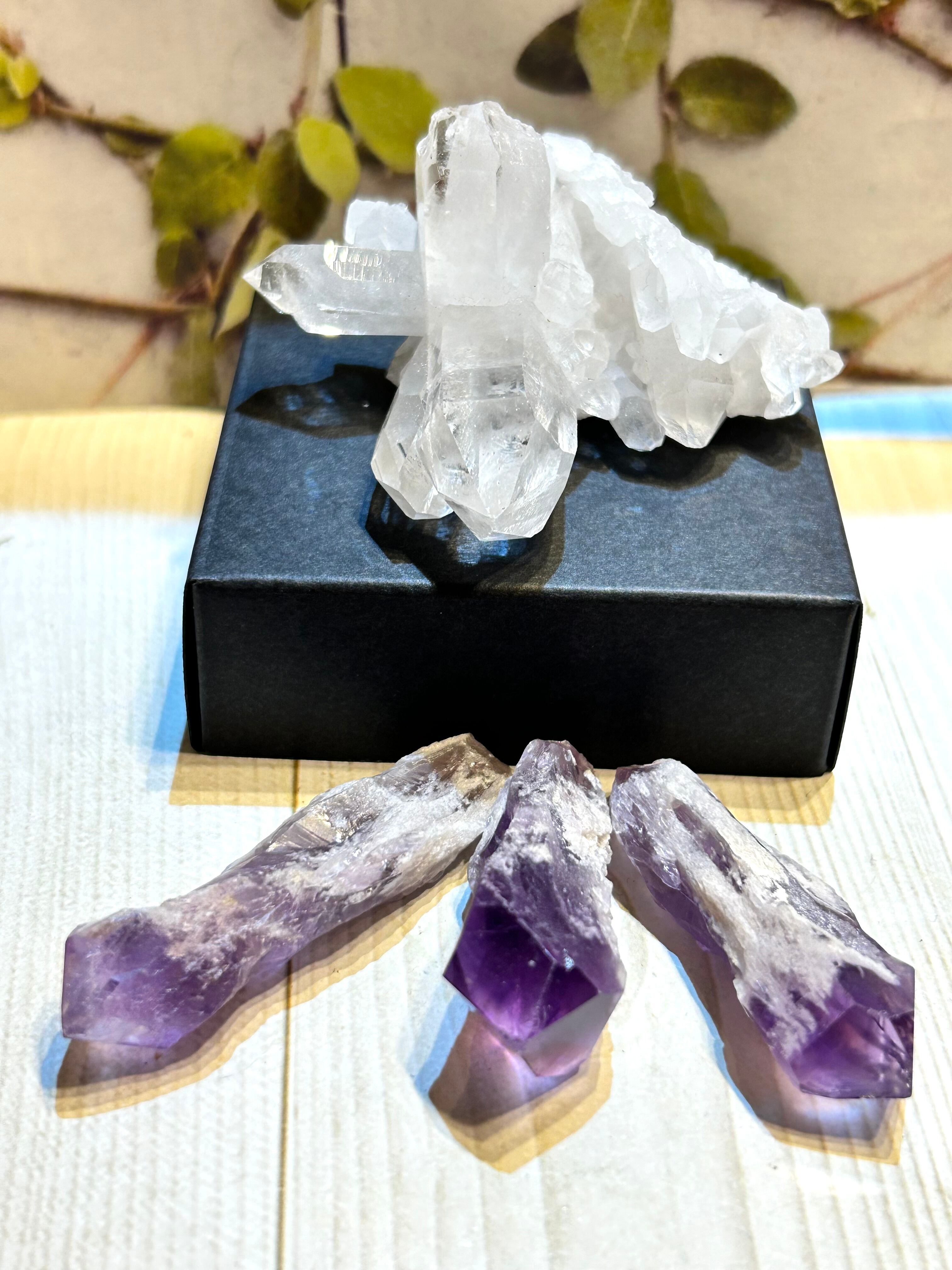 トマス・ゴンザガ産水晶ミニクラスター&バイーア州アメジストセット