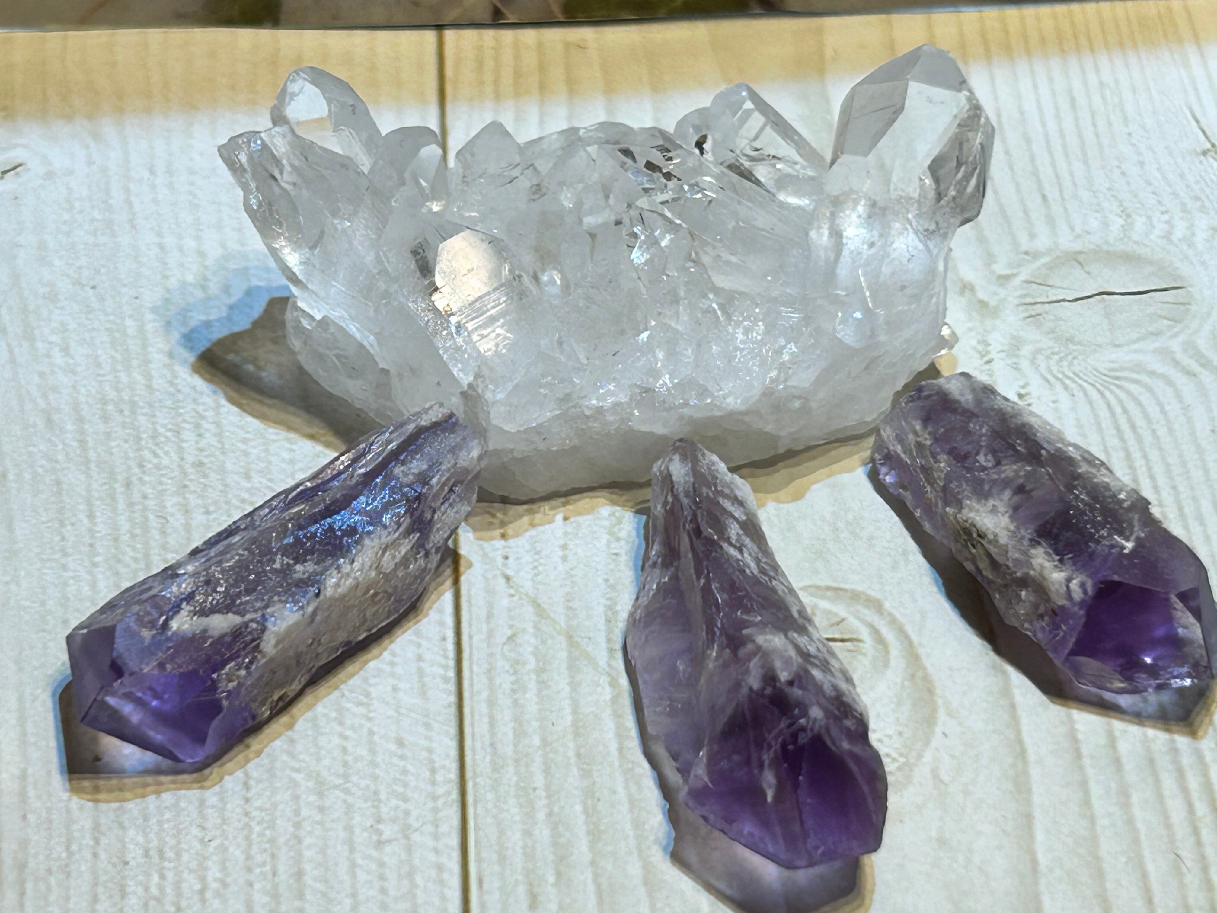 天然のトマス・ゴンザガ産水晶ミニクラスターとバイーア州で産出される美しいアメジストのセットです。